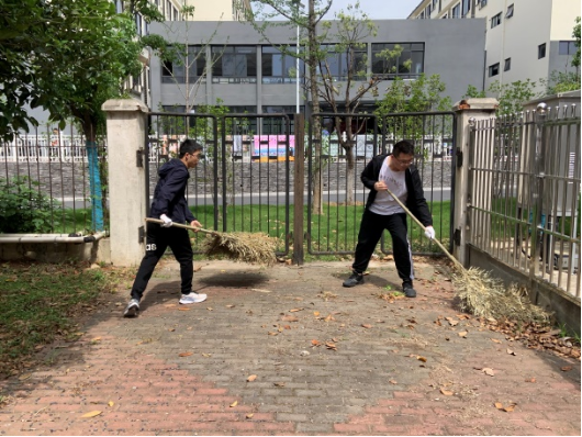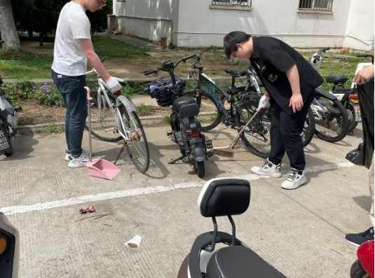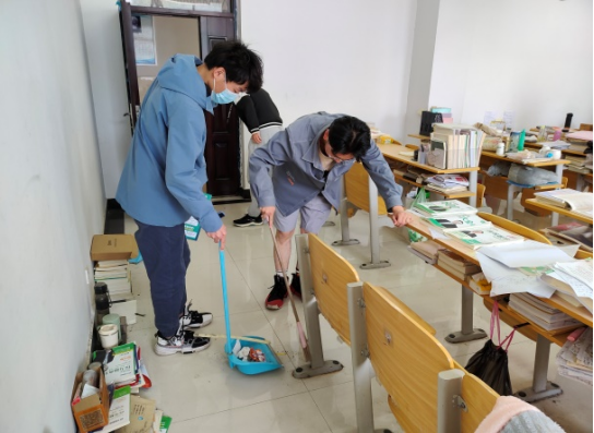 同学们携带垃圾袋、扫把、簸箕等劳动工具,在E、F栋公寓内外、化工楼周围等公共区域进行清扫保洁。同学们按照分工、各司其职,一部分学生将宿舍楼的白色垃圾、掉落枯叶等收拾干净,门前电瓶车、自行车摆放整齐,营造卫生的居住环境;一部分学生将化工楼自习室清扫干净,桌椅摆放整齐,营造舒适的学习氛围。