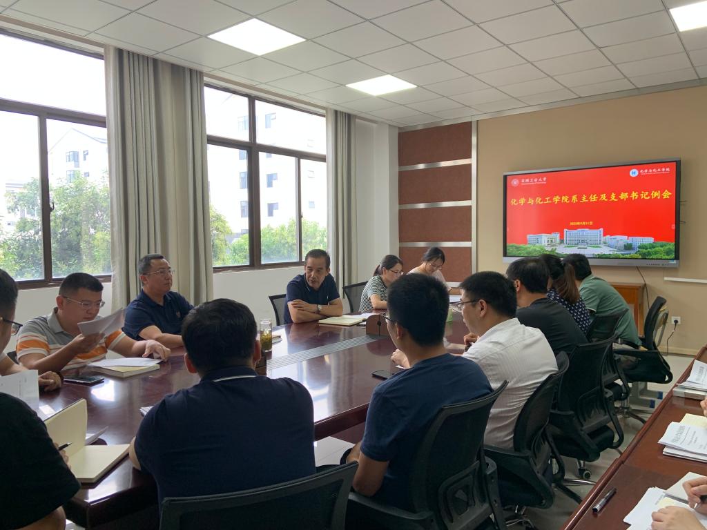 9月11日下午,丝瓜视频 在秀山校区化工楼南221会议室召开学院系主任及支部书记例会,院领导班子成员、各系室(中心)主任、各党支部书记参加会议。会议由院党委书记黄宇弦主持。