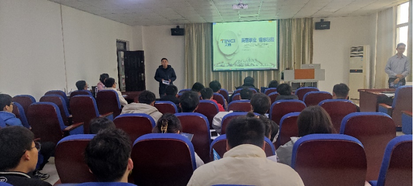 会前,夏友谊结合各专业的就业形势为毕业生们进行了分析,动员毕业生在就业过程中要选对就业岗位,并对广州天赐高新材料股份有限公司进行了介绍,要求毕业生积极选择与自身所学专业相关的企业岗位。会上,同学们认真观看了广州天赐高新材料股份有限公司的宣传视频,对企业有了进一步了解。人力资源部招聘经理袁俊毅围绕企业概况、企业未来发展、招聘岗位、员工培训以及员工福利等内容进行讲述。还重点解读了毕业生关注的员工技能培训、福利待遇、晋升途径等问题,并与毕业生进行了热烈交流,毕业生现场进行了简历投递和面试。