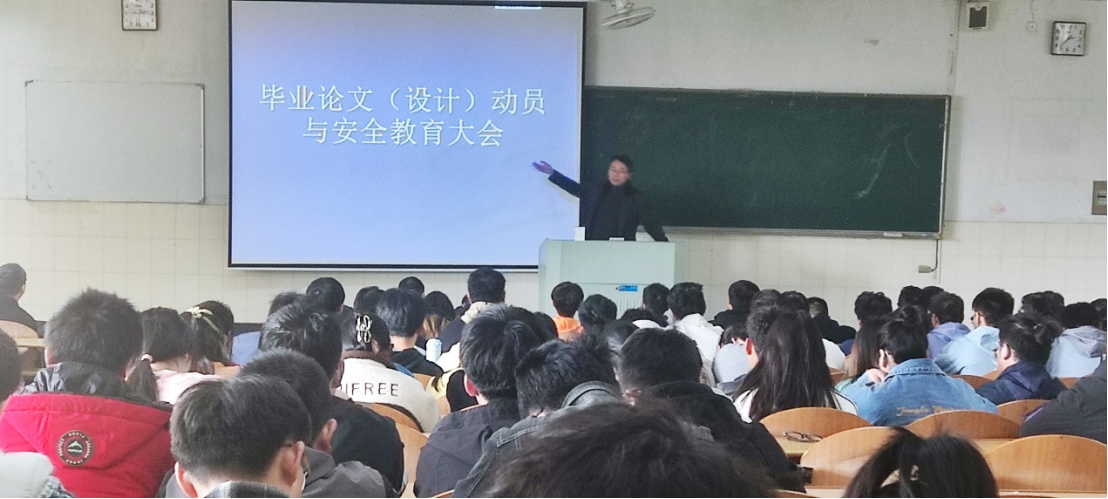 为进一步提升毕业生在开展毕业设计(论文)期间的安全意识和提高毕业设计(论文)质量, 3月6日下午14:30丝瓜视频 在秀山校区阶梯教室101召开毕业设计动员与安全教育教育大会。会议由教学副院长夏友谊主持,院长何孝军、副院长张代林、各系室主任、部分毕业设计指导老师、毕业班辅导员及全体毕业生参加此次大会。
