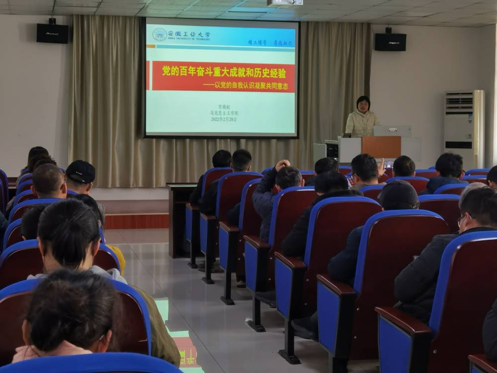 会上,宫晓虹分别从党的十九届六中全会的议程和重大意义、《中共中央关于党的百年奋斗重大成就和历史经验的决议》的主要内容、第三个历史决议与高校立德树人等三个方面对全会进行了深入浅出的解读。宫晓虹结合党的成长历史及马克思主义中国化与时俱进的三次伟大飞跃,重点从一个主题、两个确立、两个结合、三大飞跃、三个核心要义、四个历史时期、十个明确、十三个主要成就、五大历史意义、十个坚持、一个伟大号召等方面对《决议》的内容进行了较为详细的讲解。随后,宫晓虹提出党和人民事业发展需要一代代中国共产党人接续奋斗,必须抓好后继有人这个根本大计,高校教师要用习近平新时代中国特色社会主义思想教育人、用党的理想信念凝聚人、用社会主义核心价值观培育人、用中华民族伟大复兴历史使命激励人,培养造就大批堪当时代重任的接班人。