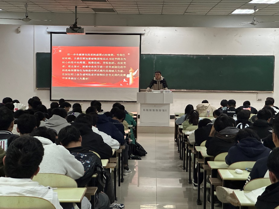 11月20日,丝瓜视频 开展党的二十届三中全会宣讲活动,校第五届辅导员宣讲团成员孔志强主讲,各年级发展对象、入党积极分子、班级主要班委参加。