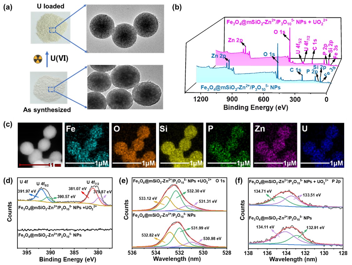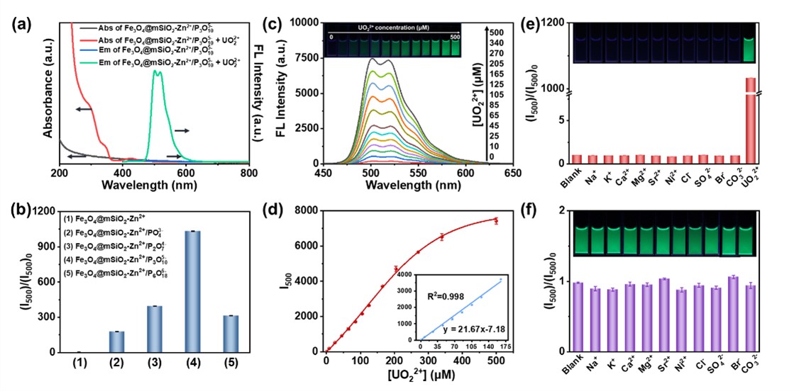 (磷酸功能化磁性介孔二氧化硅用于同步检测、吸附和重复去除铀酰离子)