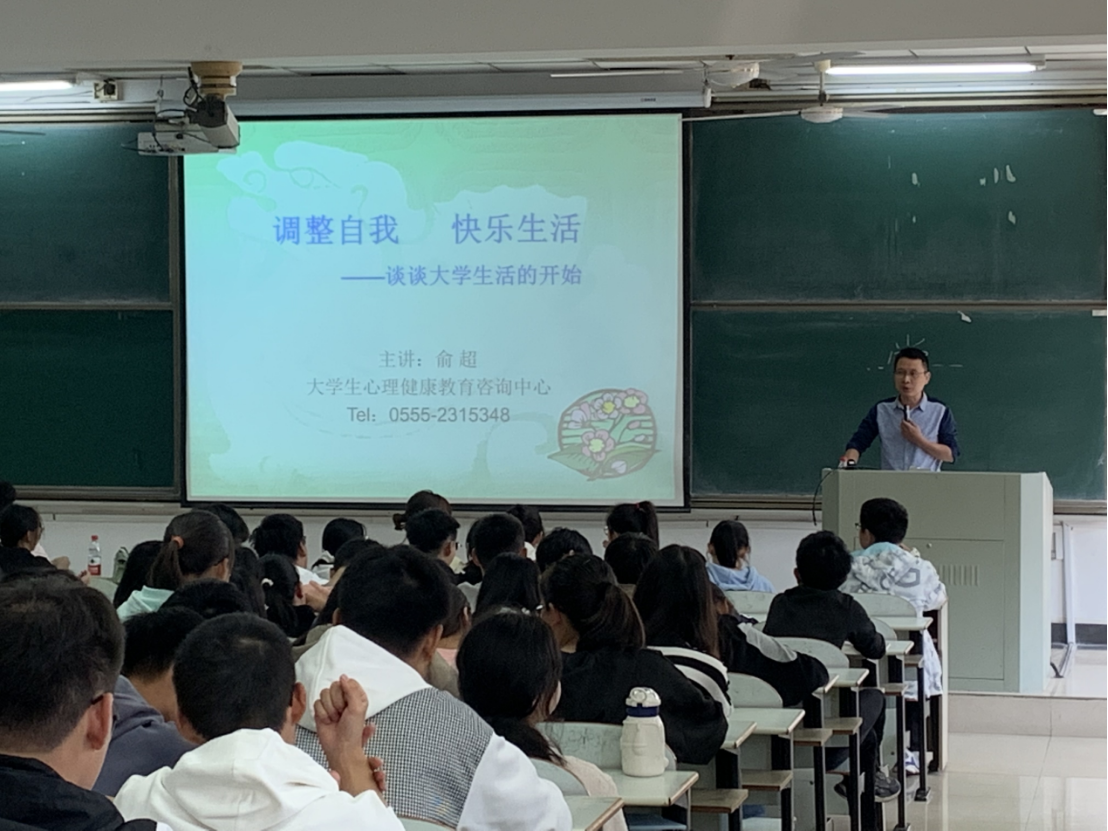 10月17日下午,丝瓜视频 在佳山校区教三南401举办新生入学适应心理讲座。校大学生心理健康教育咨询中心俞超老师应邀主讲,丝瓜视频 心理工作站站长朱圣兰老师主持,全体新生聆听此次讲座。