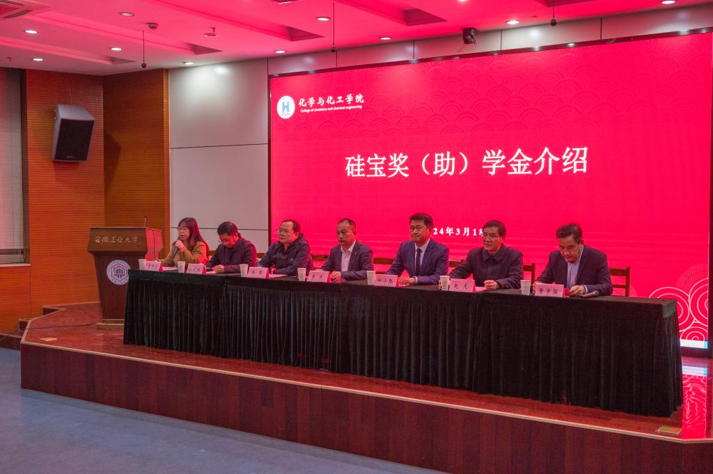 3月18日下午,化学与化工学院2022-2023学年“硅宝奖(助)学金”颁发大会在秀山校区振华图书馆学术报告厅举行。校党委常委、副校长曾杰,安徽硅宝有机硅新材料有限公司总经理邱小魁出席大会。校友处、学生工作部、化工学院相关领导、全体获奖学生及师生代表参加了大会。