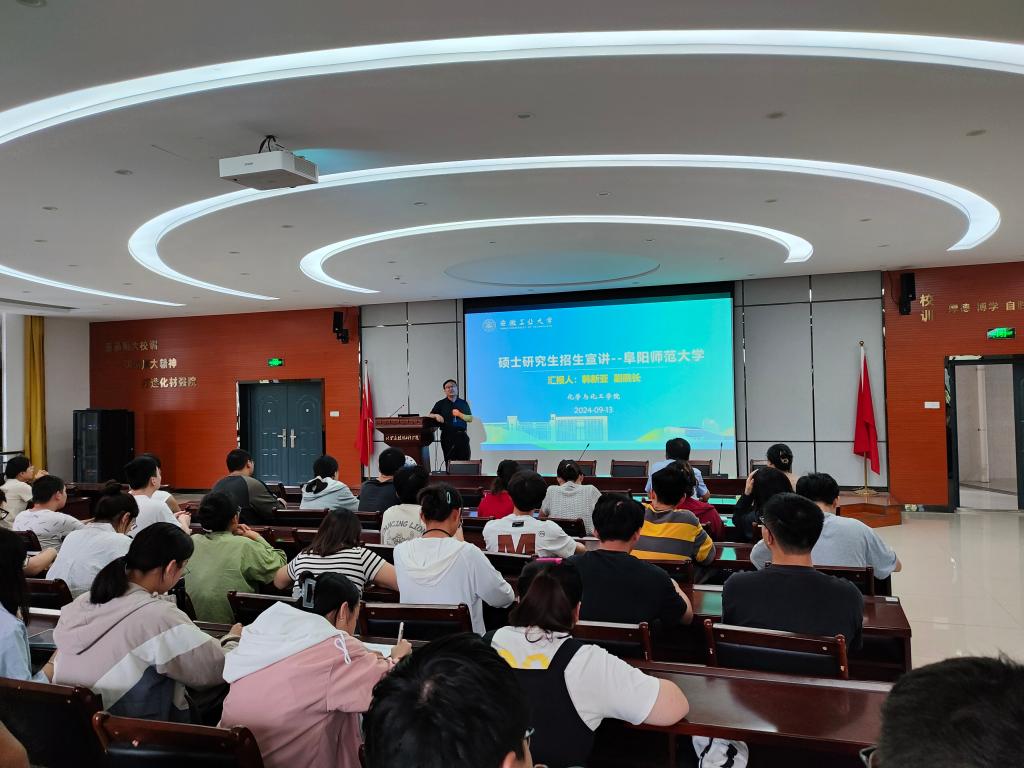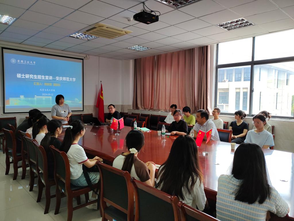 为进一步优化学院学科生源结构,提高学院考研报名率与研究生生源质量,精准推进2025年硕士研究生招生工作,9月12日至14日,化学与化工学院党委书记黄宇弦带队分别前往安庆师范大学、池州学院、阜阳师范大学开展研究生招生宣传工作,院党委副书记、纪委书记、副院长冀秀芝,副院长韩新亚,研究生辅导员李冰心参加了本次招生宣传活动。