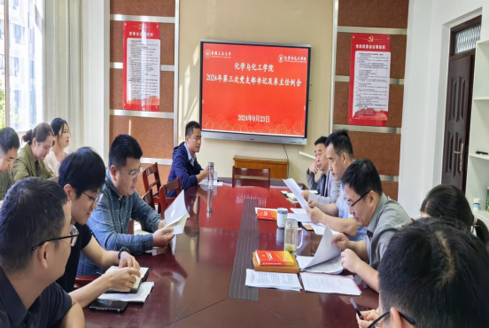 9月23日上午,化学与化工学院召开2024年第三次党支部书记及系主任例会。学院领导班子成员、各党支部书记、各系(中心)主任参加会议,会议由院党委书记黄宇弦主持。