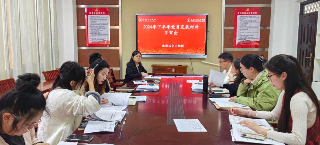 为严格发展党员程序、规范发展党员材料,11月13日下午,化学与化工学院在化工楼南221会议室开展“互相来找‘茬’—2024年下半年党员材料互查活动”。会议由学院党委副书记、纪委书记、副院长冀秀芝主持,全体学生党支部书记和院党委秘书参加了会议。