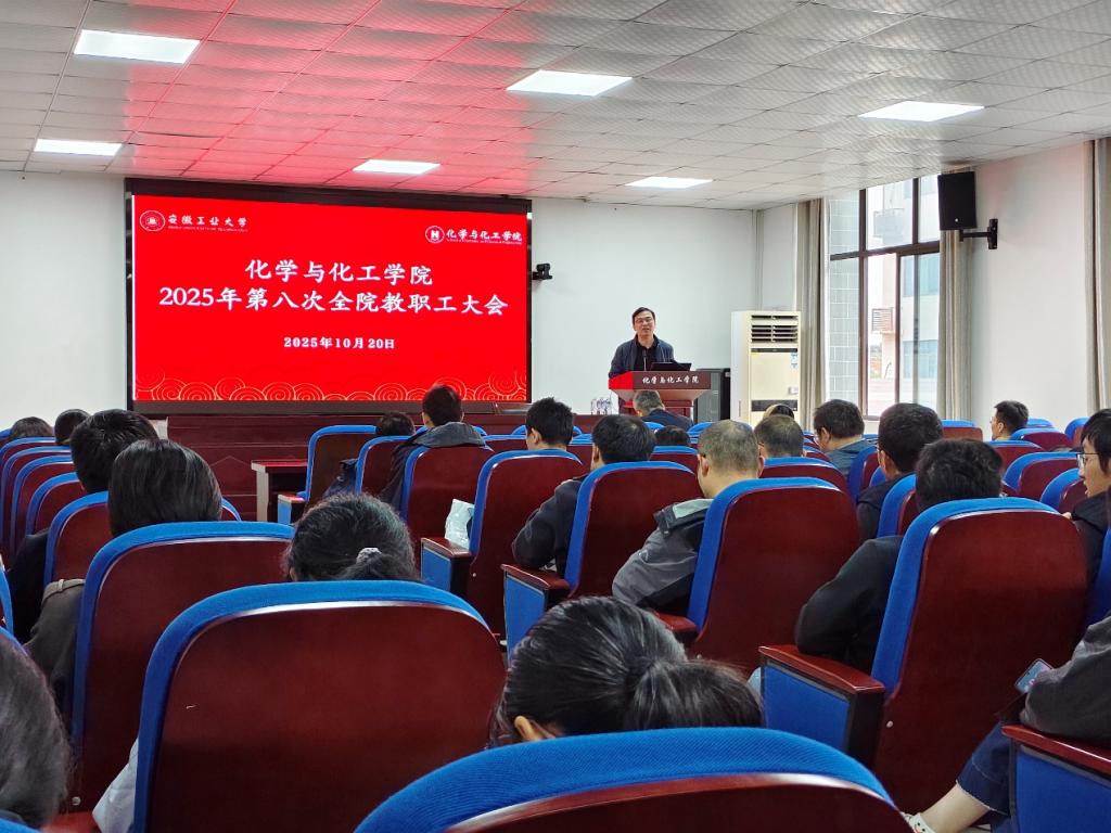 2025年10月20日下午,化学与化工学院在化工楼南207报告厅召开2025年第八次全院教职工大会。会议由副院长(主持行政工作)韩新亚主持。
