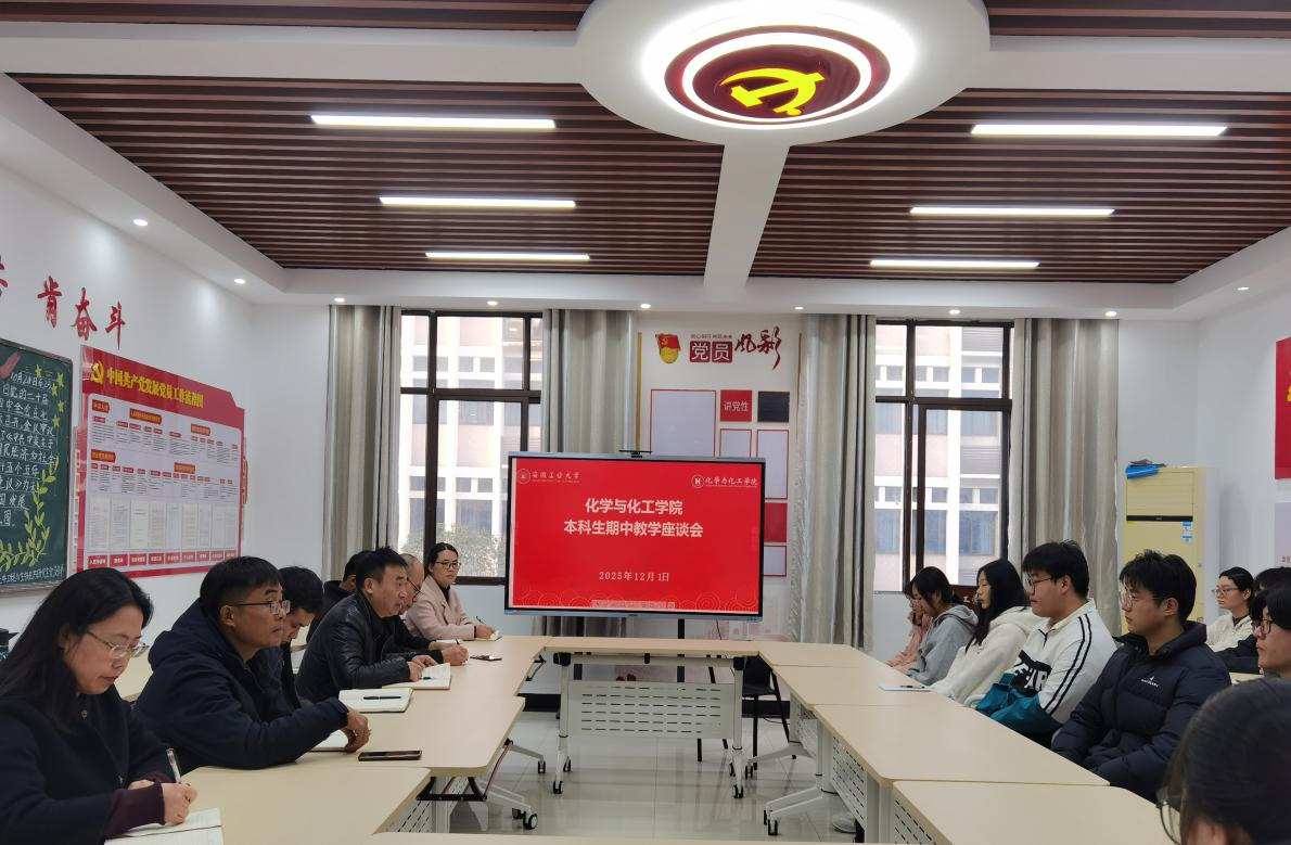 2025年12月1日,化学与化工学院组织召开期中教学师生座谈会。会议由学院教学副院长夏友谊主持,院党委副书记、纪委书记、副院长冀秀芝,各系(中心)负责人、骨干教师代表及各年级学生代表共同参会。