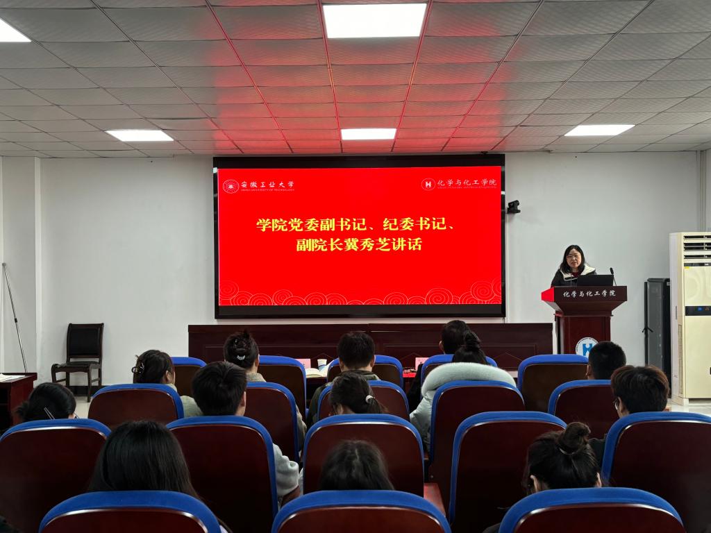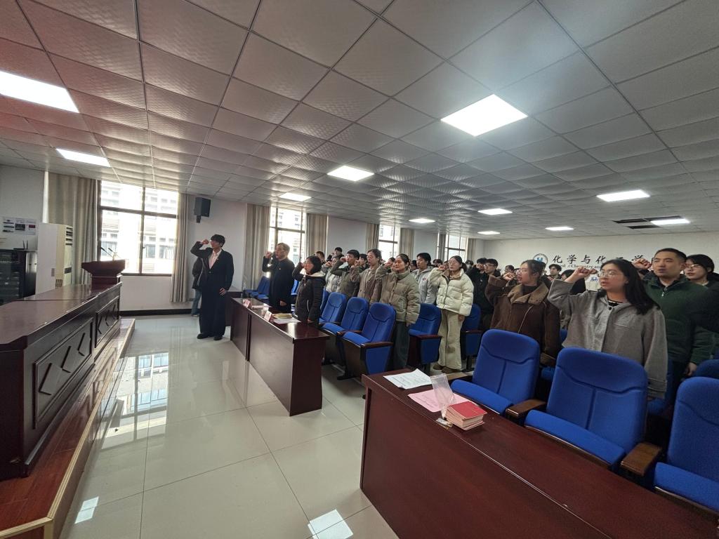 12月12日,化学与化工学院2025年下半年新发展党员入党宣誓仪式在秀山化工楼207报告厅举行。学院党委书记黄宇弦,党委副书记、纪委书记、副院长冀秀芝,各学生党支部书记、党员代表及2025年下半年全体新发展、转正党员参加宣誓仪式,仪式由院分党校班主任王若兰主持。