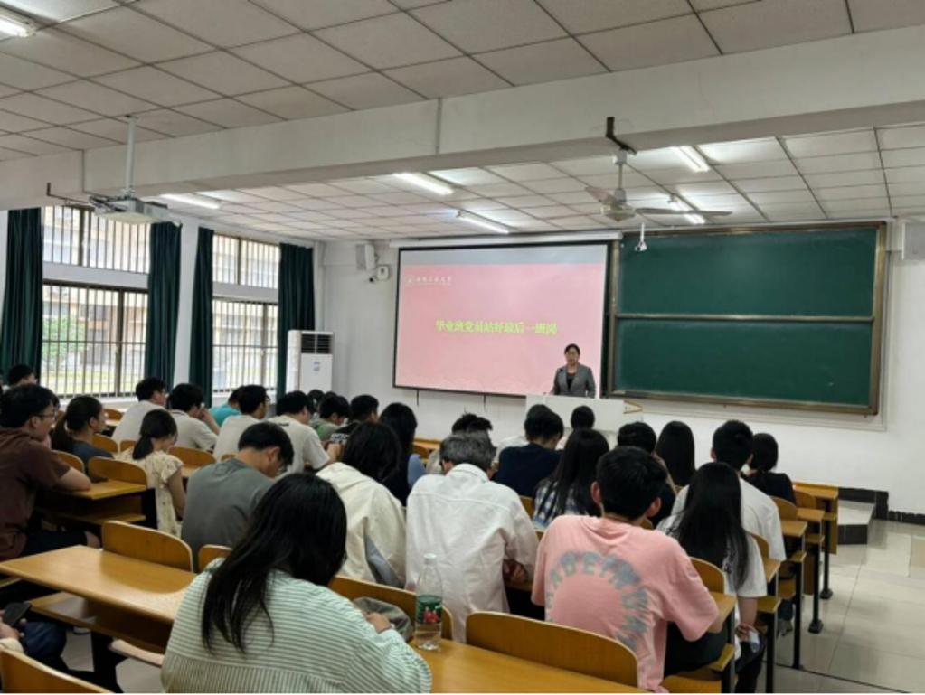 会上,毕业班辅导员还宣读了《致全体2025届毕业生党员的一封信》,并布置了毕业生离校期间的具体工作和事项。要求全体党员在毕业临行之际,发挥党员的先锋模范作用,勇于担当作为,组织好全体毕业生文明安全离校,站好最后一班岗,展现党员毕业生党员的良好精神风貌与素质素养。