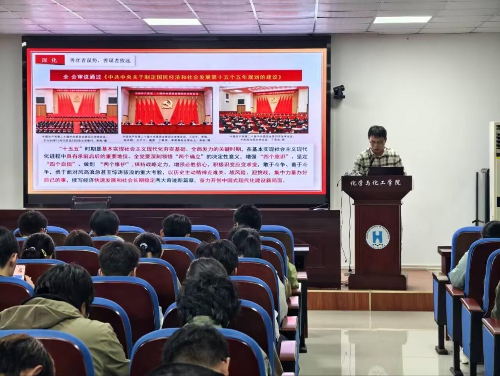 2025年11月3日晚,化学与化工学院第五次团员代表大会在秀山校区化工南楼207会议室召开。化学与化工学院党委书记黄宇弦、党委副书记冀秀芝、团委书记朱圣兰、团委副书记孔志强及全院团员代表参加,会议由朱圣兰主持。