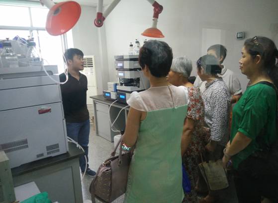 上午九点,参观正式开始,在科室人员的带领下,首先参观了样品室,样品室堆满了各种各样的食品,有各种食用油,饺子、薯片等等,它们被分了不同的批次,按照待检、在检、检毕划分了区域。接着到了前处理室,里面有通风橱,用于做一些会会发出有害物质的实验,还有一些离心机。接下来是整个科室最主要的理化室,大部分的实验在这里完成,理化室到处是化学试剂的味道,但丝毫没有影响到参观人员的积极性。之后来到了液相室,液相室许多昂贵的机器,它们可以增强实验结果的精密性,为检测工作带来了不少便利。接着又到了色谱室,色谱室和液相室类似,以一些高科技仪器为主,最后是微生物室,据科室人员介绍,主要是进行食品中的菌落的测试。