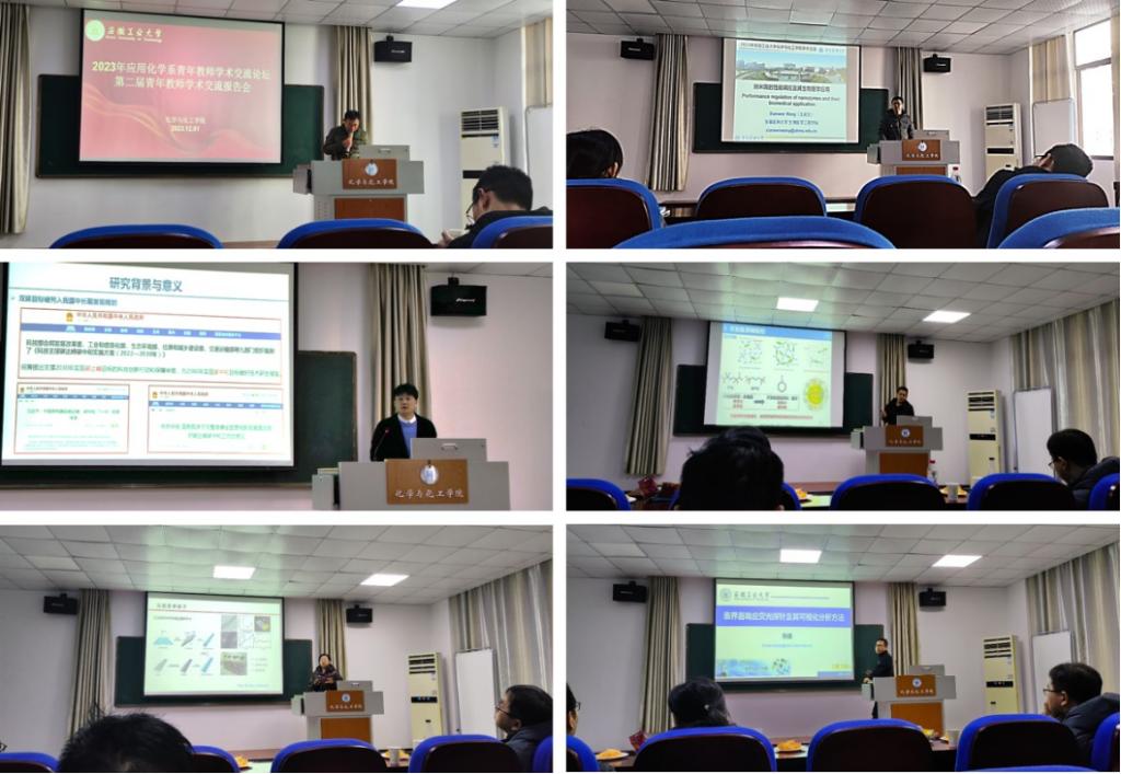 2023年12月1日,由应用化学系党支部举办的第二届“青年教师学术交流报告会”在化工楼南207会议室举行,学院副院长夏友谊、应用化学系党支部书记吴孔林、学院教师和研究生等40余人参加了此次学术交流会,报告会由副院长夏友谊、吴孔林共同主持。
