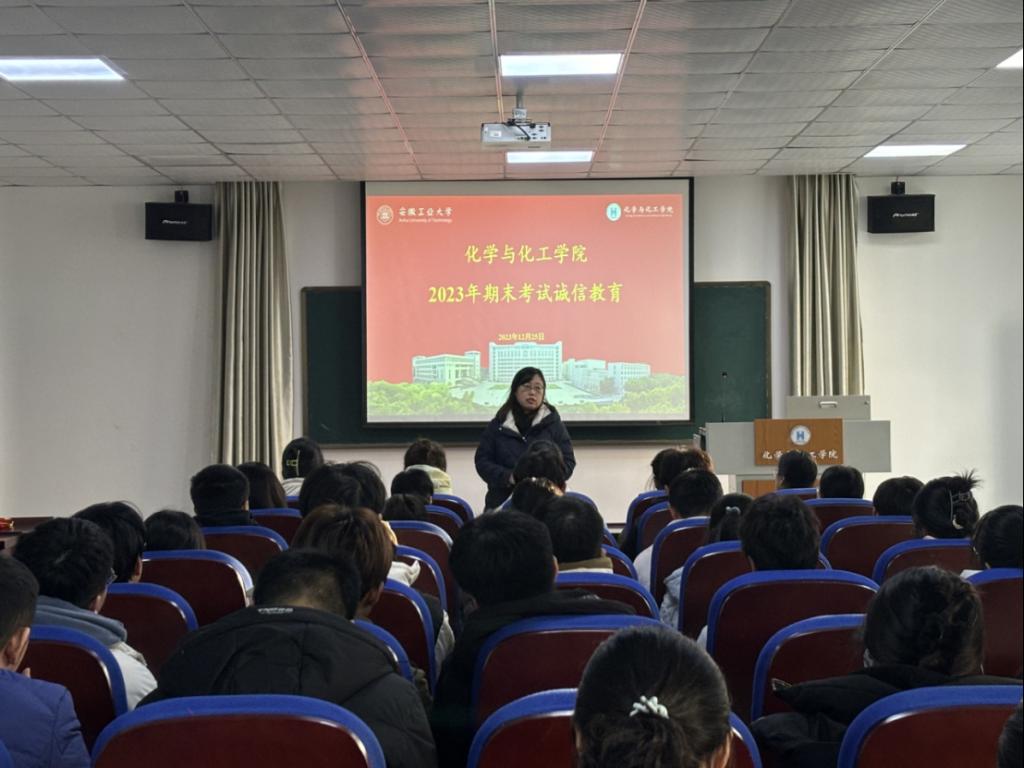 为进一步严肃考风考纪,提高学生的文明素质,加强学院学风建设,12月25日下午,化工学院在秀山校区化工楼报告厅开展考试诚信教育暨考前动员大会,会议由化学与化工学院党委副书记、纪委书记、副院长冀秀芝主持,全体辅导员、各年级学生党员代表100余人参加会议。
