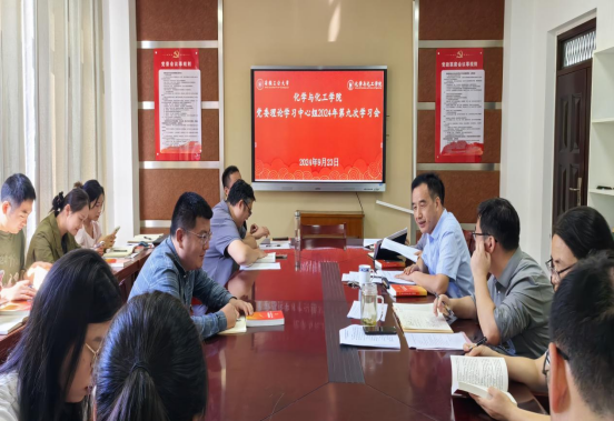 9月23日上午,化学与化工学院党委在学院221会议室召开院党委理论学习中心组2024年第九次学习会。学院领导班子成员、党委委员、党支部书记、办公室主任、党委秘书、分团委书记等参加了学习会,会议由院党委书记黄宇弦主持。