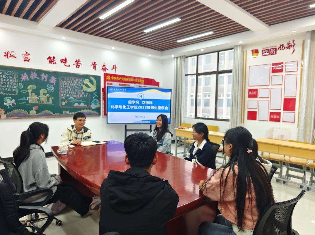 为了更好地营造浓厚的学习氛围,创建优良学风,提高学风建设成效,2024年11月4日,化学与化工学院2023级开展“促学风 立榜样”师生座谈会,23级辅导员孔志强与各专业学生代表参会。