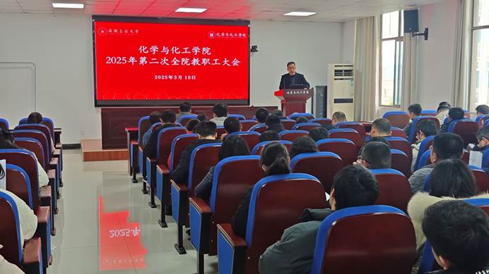 2025年3月10日下午,化学与化工学院在化工楼南207报告厅召开2025年第二次全院教职工大会。会议由院党委书记黄宇弦主持。