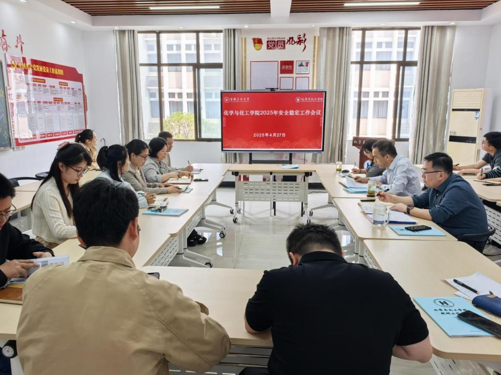 4月27日上午,化学与化工学院召开2025年安全稳定工作会议,传达学校2025年安全稳定工作会议精神,安排落实学院安全稳定工作。学院领导、党委委员、各系室主任、各支部书记、实验中心安全管理员及辅导员参加了会议。会议由学院党委书记黄宇弦主持。