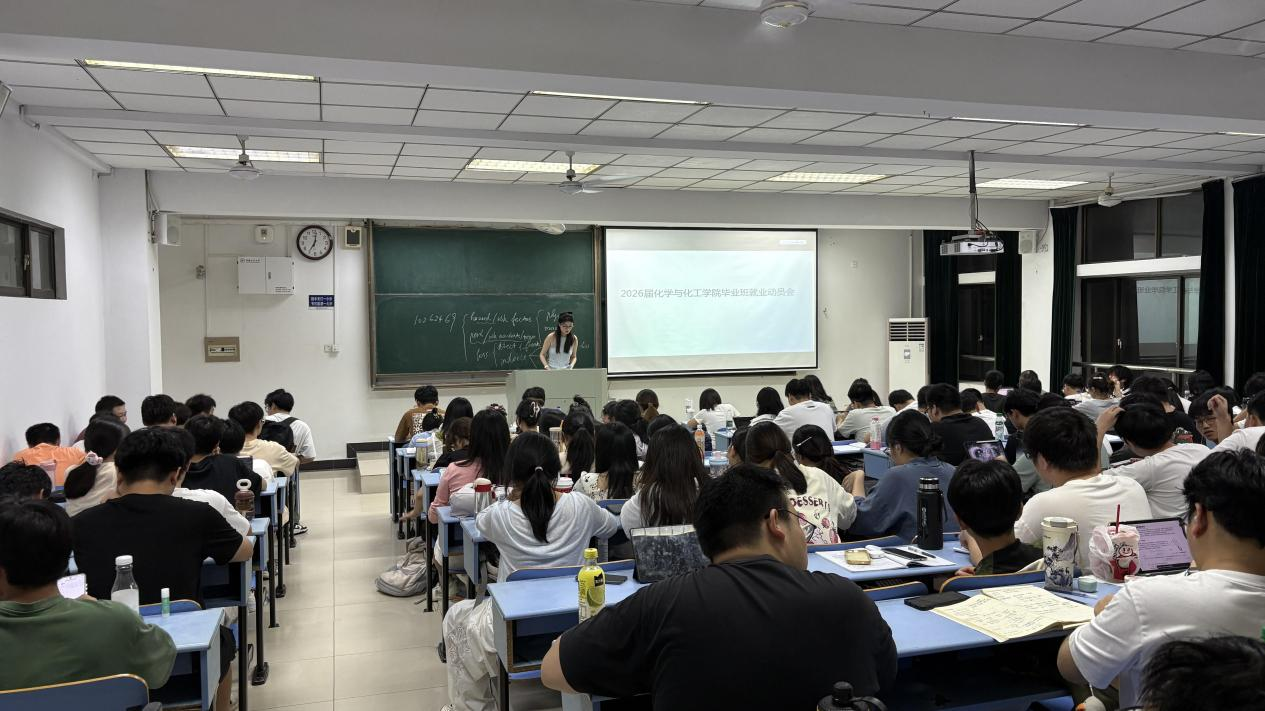 为积极应对当前就业形势,扎实推进2026届毕业生就业工作,9月15日晚,化学与化工学院在教一南206召开2026届毕业生就业动员大会,2026届全体毕业生参加,会议由2026届毕业班辅导员赵月、徐静婕主持。