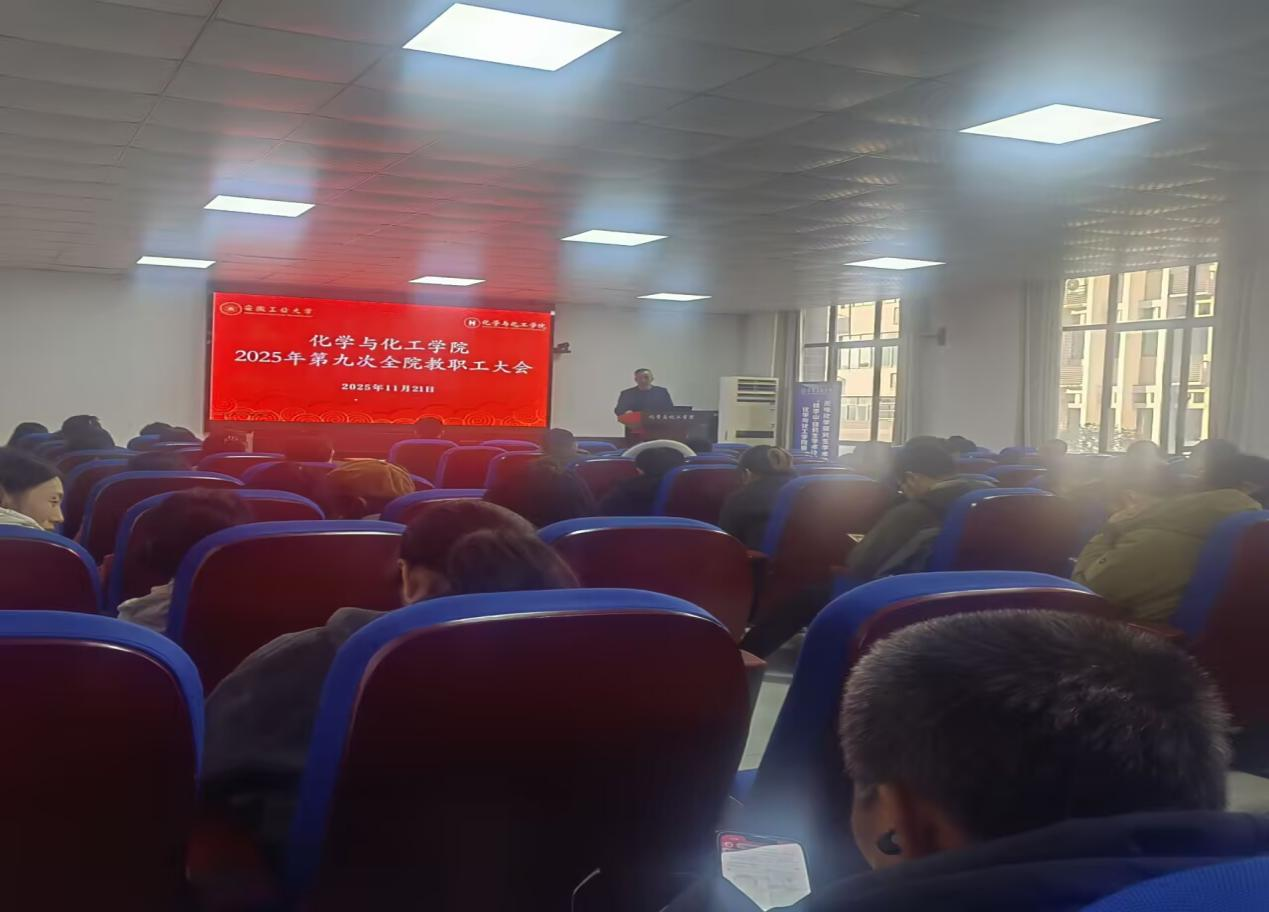 2025年11月21日下午,化学与化工学院在化工楼南207报告厅召开2025年第九次全院教职工大会。会议由院党委书记黄宇弦主持。