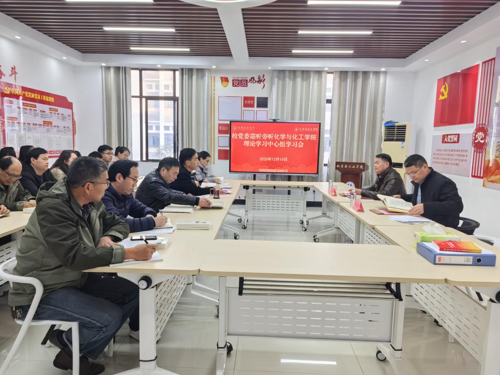 12月10日上午,化学与化工学院党委召开院党委理论学习中心组2025年第12次学习(扩大)会,校党委书记、校党委巡听旁听工作组第一组组长陆林到会巡听旁听。院党委书记黄宇弦主持会议,巡听旁听工作组第一组成员、学院党委理论学习中心组成员参加学习会。
