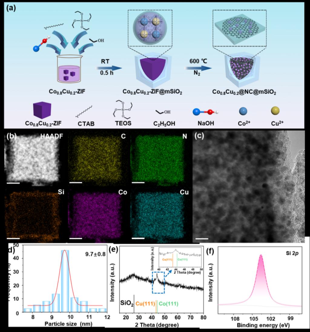(Co0.8Cu0.2@NC@mSiO2催化剂制备及表征图)