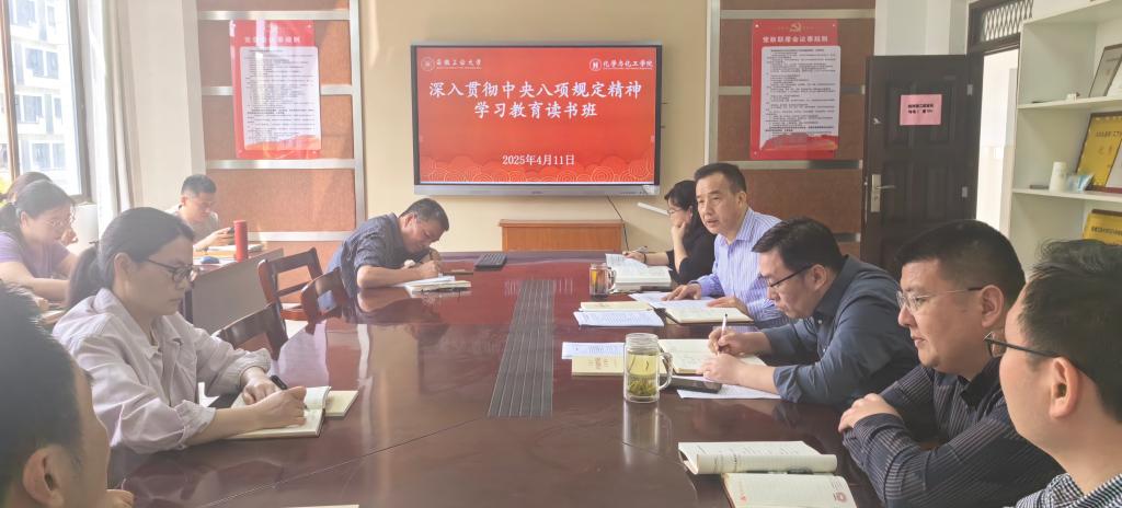为进一步推动深入贯彻中央八项规定精神学习教育走深走实、见行见效,4月11日,化学与化工学院党委举办深入贯彻中央八项规定精神学习教育专题读书班。学院领导班子成员、党委委员、全体党支部书记等参加了本次读书班,学院党委书记黄宇弦主持会议。