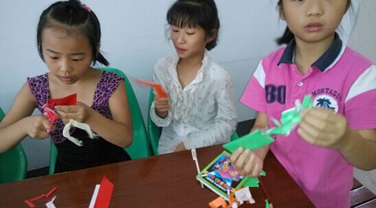 15号上午,钟村的30余小学生来到钟村居委会活动室,与志愿者共同完成弘扬中华传统文化系列的活动,感受中华文化的魅力。首先,志愿者通过这几天的自学,结合PPT向小学生从剪纸的起源、表现形式、艺术流派等方面做了详细的解说并通过大量作品评析和现场演示使同学全方位的了解了我国的剪纸艺术,然后,小学生开始自己动手制作,志愿者在旁边进行指导。对于彩色作品,志愿者提倡环保,用一些废弃物品如旧报纸、糖纸、春联等。在制作的过程中,小学生全神贯注,不仅了解了剪纸艺术,同时也锻炼了自己的动手能力。一个半小时过后,大家手中多了很多战利品,红色的“祖国万岁”的彩字作品,活灵活现的龙凤剪纸呈现在了大家的面前。