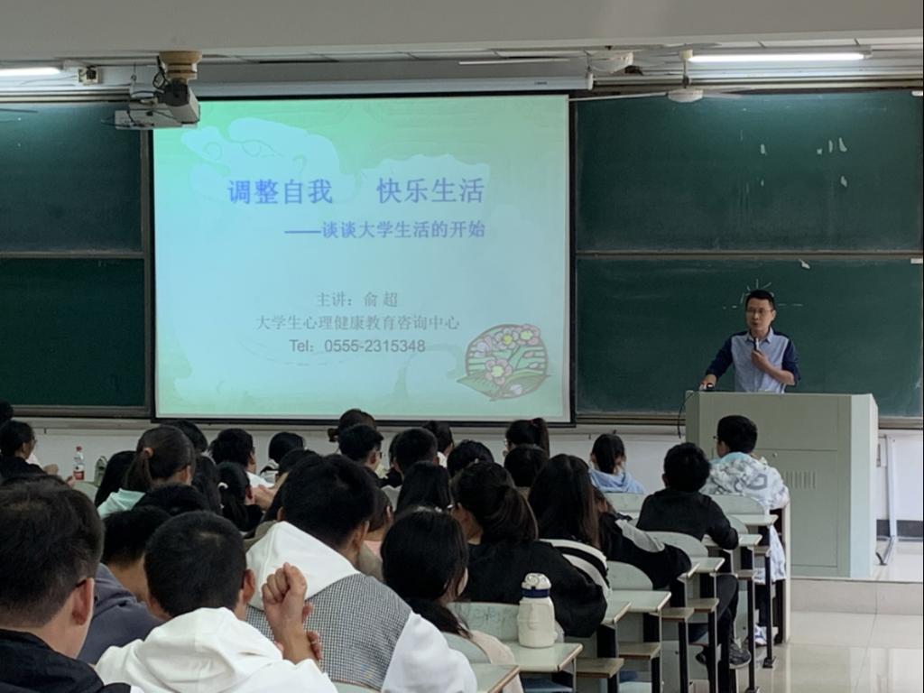 10月17日下午,化学与化工学院在佳山校区教三南401举办新生入学适应心理讲座。校大学生心理健康教育咨询中心俞超老师应邀主讲,化工学院心理工作站站长朱圣兰老师主持,全体新生聆听此次讲座。